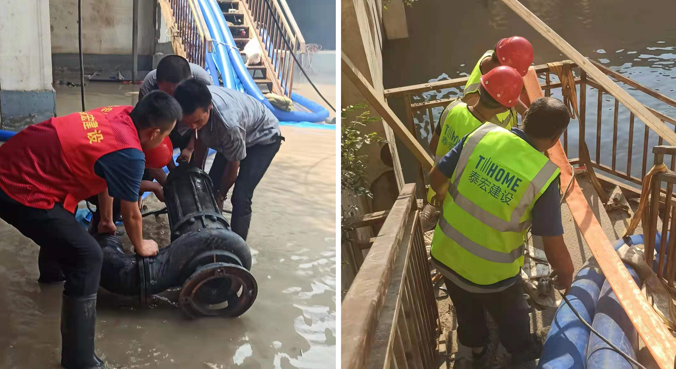 按照市住建局部署,公司统一安排,泰宏建设第一公司各项目立即奔赴金水区丰产路办事处东峰听橹小区,天裕小区,郑州商务宾馆,红旗路80号院、94号院,尚城宾馆,爱泊酒店等地方参与灾后救援排水工作。公司总经理宋广明亲自上阵安排、指挥,常务副总赵建国,第一公司王道军,王刚,秦朝,董政,杨强、倪铁虎等领导按照分工,立即组织现场排水。各项目携带发电机组,抽水泵等设备积极投身一线,在最快的时间完成现场调配调试,开展排水工作。